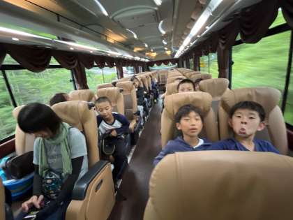 ハイキングが終わり、バスに乗り込み、いざ、宿「姫木平自然の家」へ。