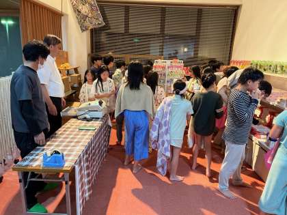 2組の買い物の様子です。どのクラスもキツネのキーホルダーが人気のようです。残金調整で黒曜石も人気です。[image1.jpeg]