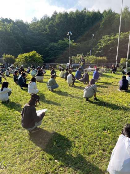 先生の指示を聞いたあと、近くの湖まで、散策に行きます。[image2.jpeg]