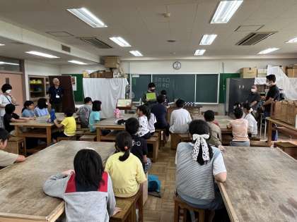 宿舎の君津亀山青少年自然の家に着き、開校式を行いました。自然に囲まれたとても環境のよいところです。