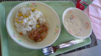 香ばしい香りで甘辛いチキンが、コーンピラフと相性ばっちり