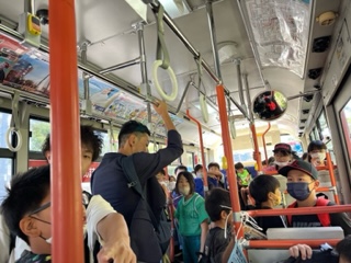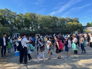 校庭で出発式を終えて、バスに乗り込みました。
