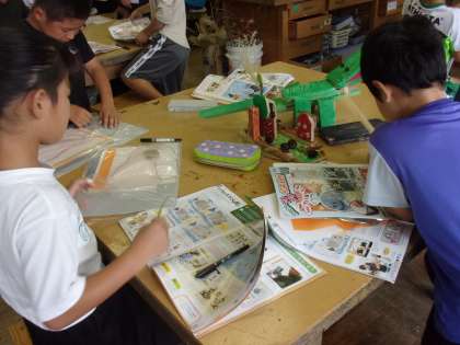 おもしろい深海の世界をイメージして作品を作ります。いろいろな材料を使って、組み合わせながら版を作ります。