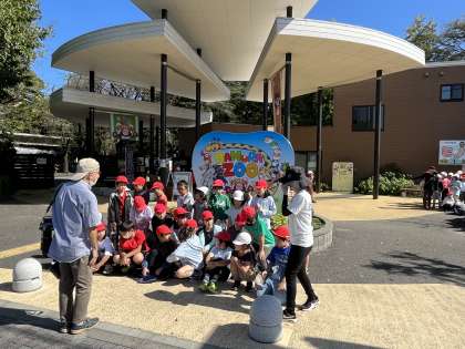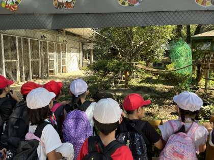 羽村市動物公園に着きました。入口付近でクラス写真をとり、入場しました。入場してすぐにレッサーパンダを見ました。
