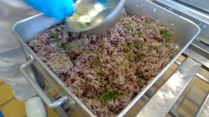 られています。衣装の色を4つの穀物と青のりで表現しました。
