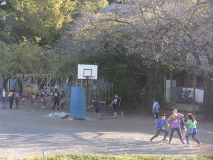 今日の放課後は「きらきら」に参加している子供たちがたくさんいました。青空の下、元気いっぱい遊具やボールを使って遊んでいました。