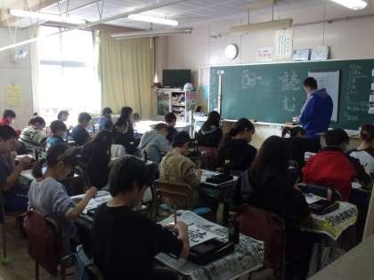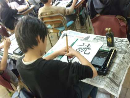 毛筆で「とめ」と「はらい」を意識しながら「読む」をバランスよく書きました。
