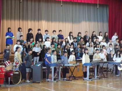 今日は5年生が保護者の方をお呼びして、音楽発表を行いました。「ARUKI☆DASOU」と「風になりたい」の合唱と合奏をしました。素晴らしい歌声と演奏でした。発表に向けて一生懸命練習してきたことを本番で精一杯出し切ることができました。さすが5年生です。明日は全校児童の前で音楽発表を実施します。