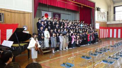 6年生の担任の先生方と一緒に考えた「門出の言葉」の発表です。6年間の思い出やお世話になった方々への感謝、5年生へのメッセージを気持ち込めて伝えていました。歌もとても素晴らしかったです。