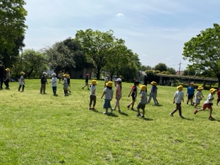 クラス写真が撮り終え、これからたてわり班遊びになります。