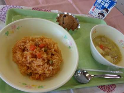 「はち米っこ」とココア、チョコチップでカップケーキを作りました。