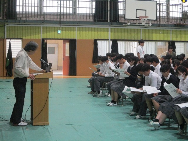 10月14日(火)の5校時に3年生の生徒と全学年の保護者を対象に進路説明会が行われました。心構えや望ましい生活習慣、受験方法の説明など、生徒は真剣に聞いていました。