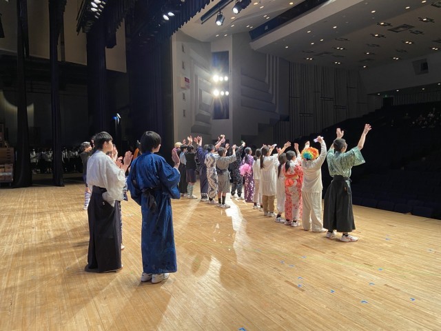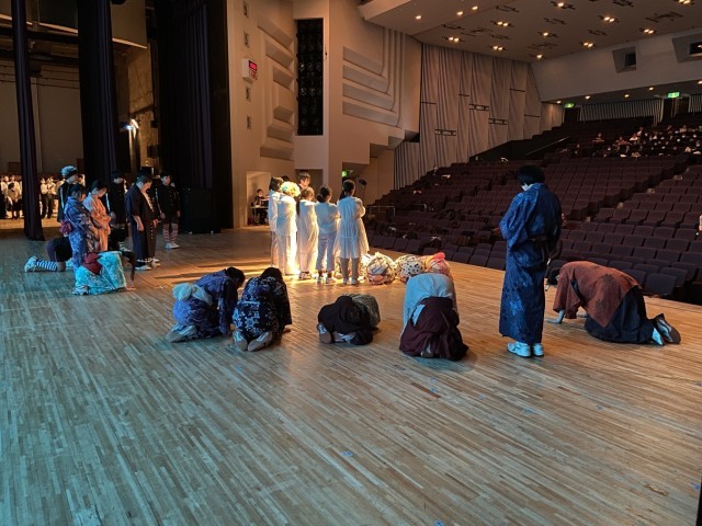 2月14日(土)、多摩地区特別支援研究会「劇と音楽の会」が、福生市民会館で行われました。5組は、出場12校の2番目に、劇「花咲き山」で登場しました。1,000人のお客様が見守る中、プロの照明のライトを浴びながら、笑いあり涙ありの感動を会場に届け、満場の拍手をもらっていました。