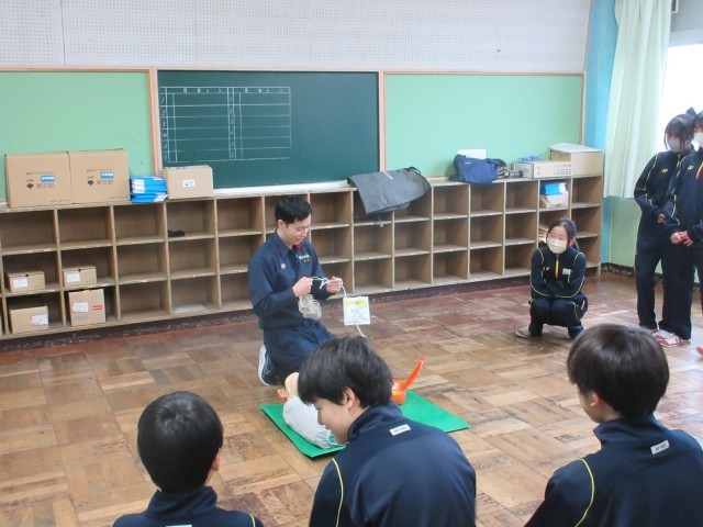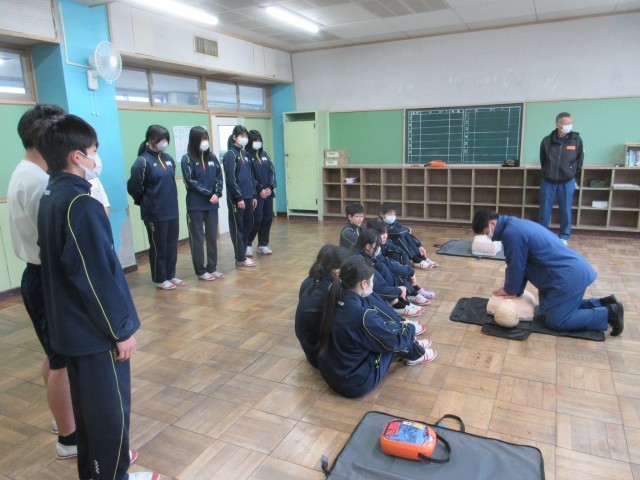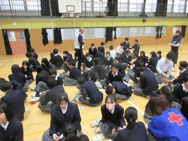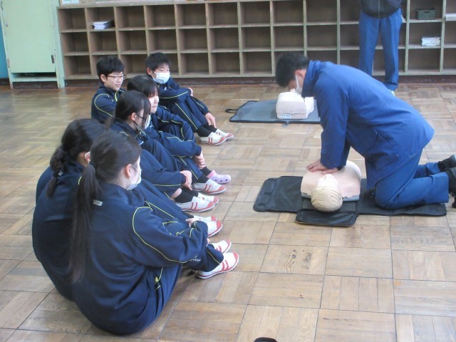 打越中と学校運営協議会共同主催の「打越中防災フェスタ」が実施されました。北野消防署の署員の方、日本赤十字社東京都赤十字血液センター立川事業所の方、打越中学校区町内会の方が早朝より来校し、準備をしてくださいました。 体育館での開会式の後、生徒たちは学年ごとに各ブースに分かれ、講話や実習を通して防災、人命救助への理解を深めました。全学年対象の「献血の意義、他人への思いやりと助け合いを知るための講話」の他、1年生対象のAEDを使用する訓練、2年生対象の119番通報時の状況伝達の訓練、3年生対象の救急包帯法(三角巾を使った止血、応急手当)の訓練が行われました。私は各ブースを順番に回りましたが、たくさんの学びや気づきがあり、どれも貴重な経験となりました。生徒たちは皆意欲的に、また楽しそうに取り組んでいました。ご来校の方々からも、生徒たちの訓練を受ける態度や落ち着いた様子にお褒めの言葉をいただきました。そして有事の際には地域の一員として大人と一緒に働き、現場を主導してもらいたいと期待する声も上がりました。311東日本大震災の日を目前に、災害を自分事としてとらえ、様々な面から自助・共助への意識を高められた時間になったと思います。