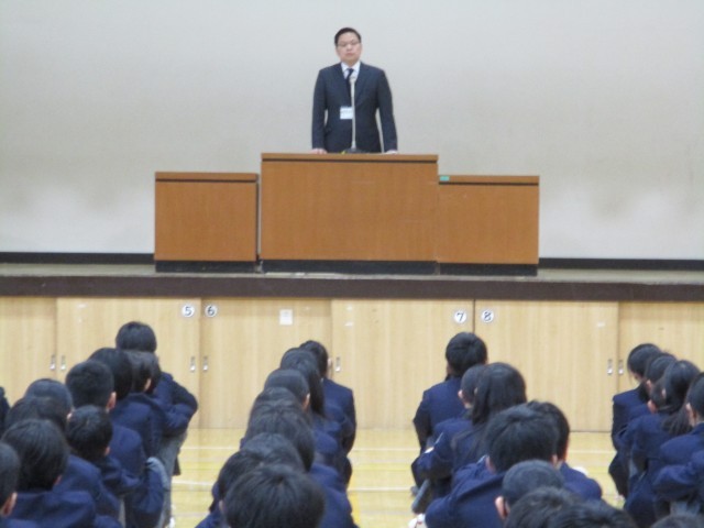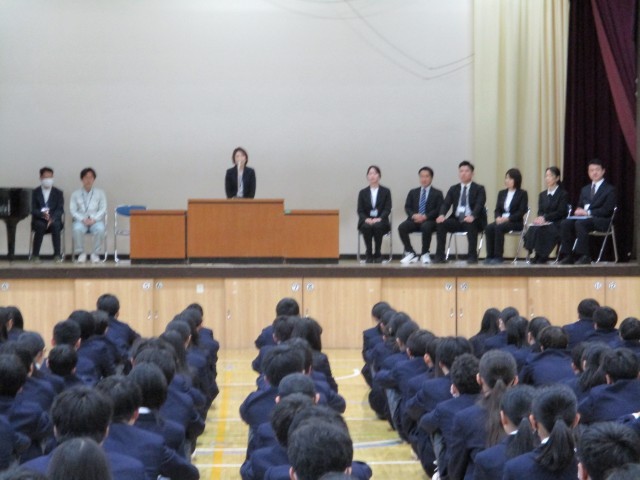 本日、令和8年度の学校生活が始まりました。新しく9名の教職員をお迎えして、着任式が行われました。その後の始業式では、各学年の代表生徒がそれぞれの目標を掲げ、上級生としての決意を語りました。校長先生からは、主体性と社会性を身に付けること、めざす学校像・生徒像についてのお話がありました。8日(水)には、入学式があります。「誇れる上級生」として、新1年生を迎えましょう。