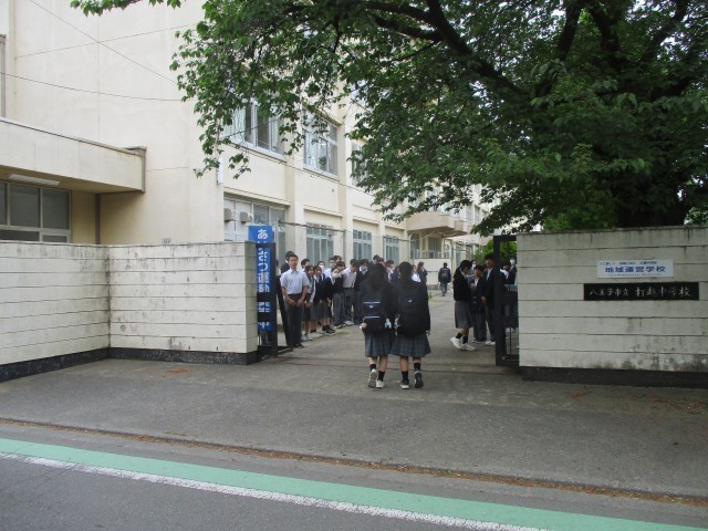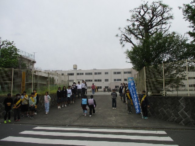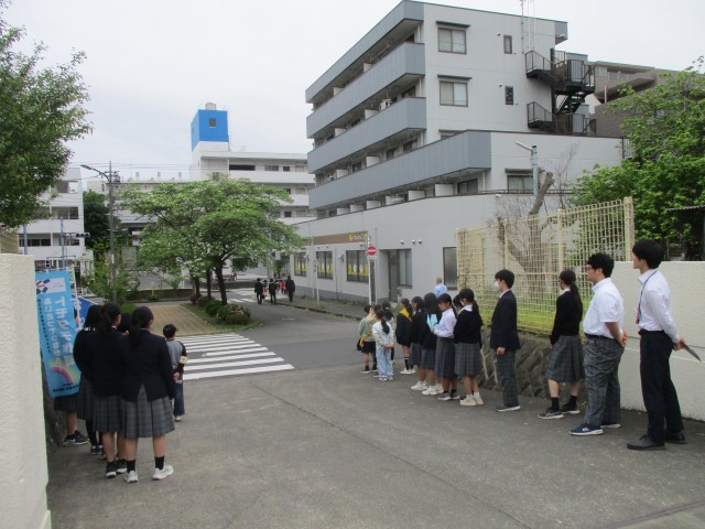 打越中と由井第一小の校門で「あいさつ運動」が行われました。