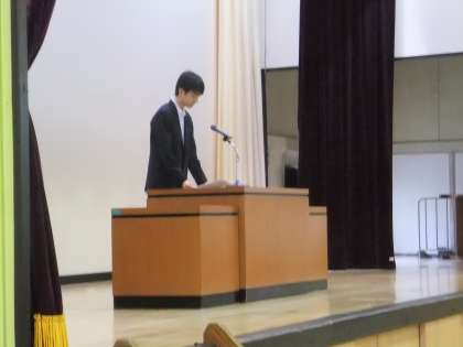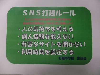 生徒会朝礼で生徒会長の竹澤君より「SNS打越中ルール」について訴えかけがありました。