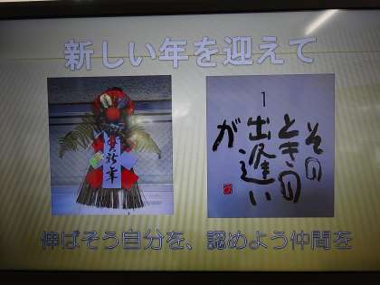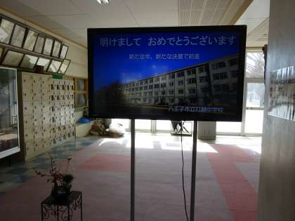 正月飾りと校内デジタルサイネージ