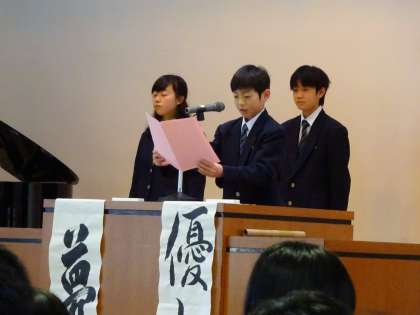 (2)生徒代表の言葉は3年横山さん、2年徳君、1年佐藤君です。