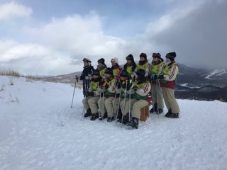 気温はマイナス10℃ですが、山頂は晴れ。どんどん生徒たちが山頂に来ています。