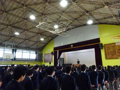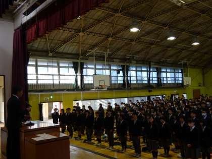 二月はいじめ防止「ふれあい月間」です。打越中では全校朝礼でいじめについて生徒教職員全員でもう一度見つめ直そうと訴えかけました。その後、アンケートを取り早期発見早期対処を行いました。今年度、大きないじめに関する問題はありませんでした。しかし、本当に一人ひとりが居場所のある優しい学校になっているのかを常に問いかけ続けなければならないと考えています。