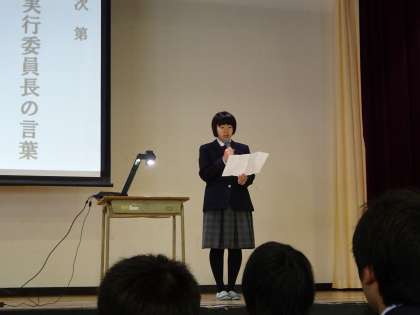 ・実行副委員長小林早希さんの言葉を聴く生徒たち
