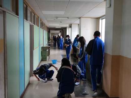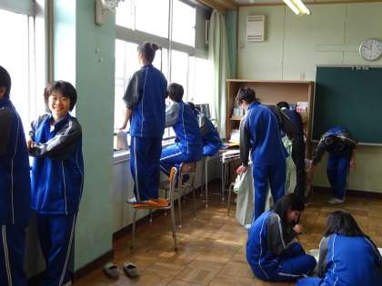 明るく全校で大掃除 公開日 2017/03/24 更新日 2017/03/24 学校の様子 3月23日(木) 今年度最後の大掃除を行いました。卒業式の後の大掃除は1、2年生で行いました。 全校生徒が明るく一生懸命に取り組み、まるで清掃を楽しんでいるかのようでした。 来年度は行内の美化意識向上に取り組む本校ですが、今日の雰囲気を大切に「学習しやすい環境」を自分たちの手で作ってほしいと思います。 いいね(0)