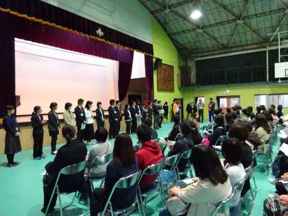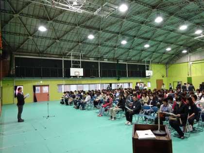 体育館の全体会で本校の部活動の基本理念「部活動を通しての人間形成」をお伝えしました。その後各部で保護者会を行いました。