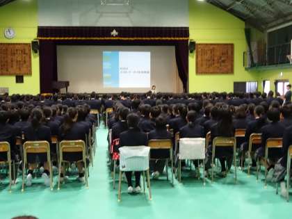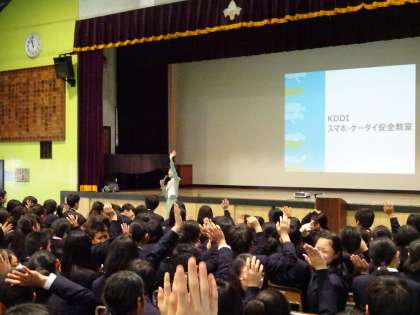KDDより講師を招きセーフティ教室を開催しました。全校生徒、保護者、地域の方々とインターネットの正しい使い方について学び、SNS打越中ルールを確認しました。