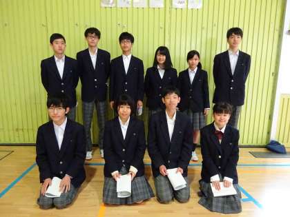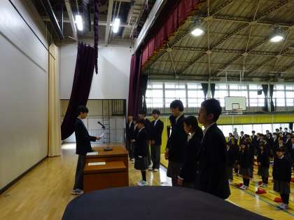 生徒会長より委員長へ任命書 公開日 2017/04/26 更新日 2017/04/26 学校の様子 4月24日(月) 生徒会朝礼において生徒会長より各専門委員会委員長へ任命書が手渡されました。生徒の自治的な活動が徐々に定着してきています。 いいね(0)