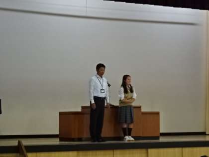 全校朝礼で校外で頑張った生徒の表彰を行いました。
