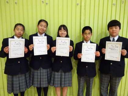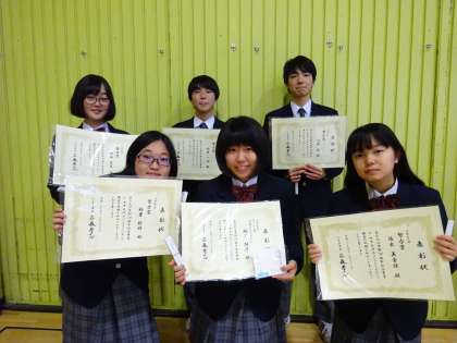科学コンクール「佳作」:祝迫雅巳君、荻島日和さん、小野彩花さん、