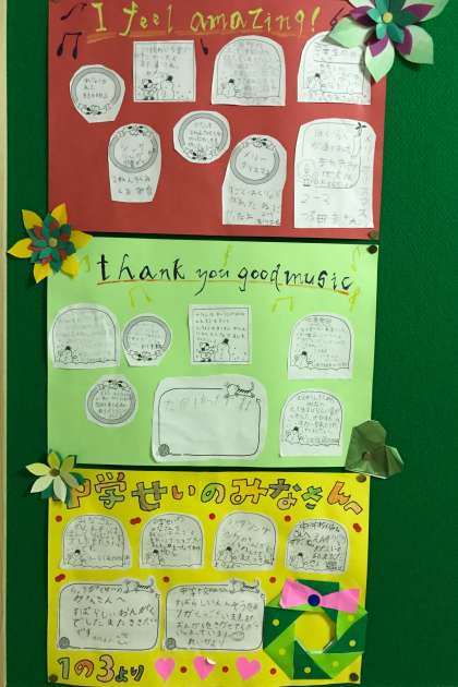 由井第一小学校から、今月12日に開催した吹奏楽部のクリスマスコンサートに対するメッセージカードをいただきました。メッセージの中に「また聞きたいです」や「打越中学校の吹奏楽部に入りたくなりました」など嬉しいことが書かれており、とても温かな気持ちになりました。素敵なクリスマスプレゼントをありがとうございました。