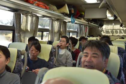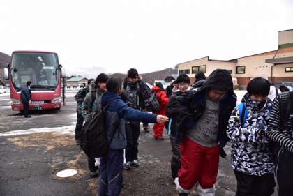 バスの中ではゲームや歌で盛り上がり、予定よりも少し早くスキー場に到着しました。