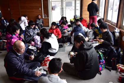 お弁当をしっかり食べて、午後のスキー講習に備えます。