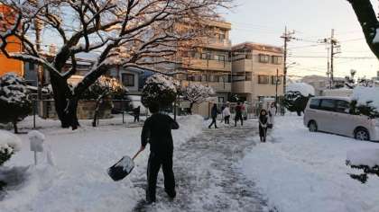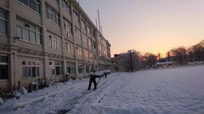 昨日からの大雪で校庭は真っ白です。早朝から職員が集まり生徒の通学路確保のために雪かきを行いました。この日は都立推薦入試の出願日でしたが、全員無事に出願を終えました。明日も凍結が予想されます。気をつけて登校してほしいです。