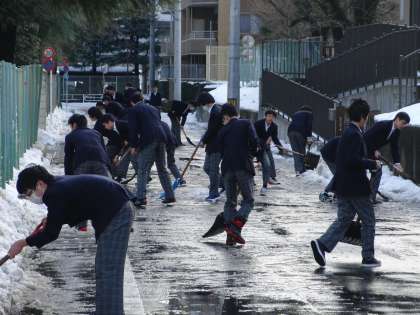 雪かき その2 公開日 2018/01/23 更新日 2018/01/23 学校の様子 3年男子と2年男子が雪かきを行いました。校舎の北側はもちろんのこと、道路の雪かきも行いました。 「打中生ありがとう!」と声をかけられたりして、嬉しい気分になりました。地域に貢献できたかな? いいね(0)