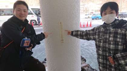 宿舎の前の寒暖計はマイナス9℃。青空です。