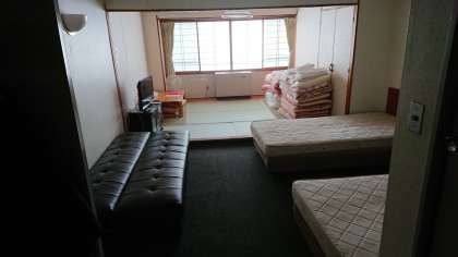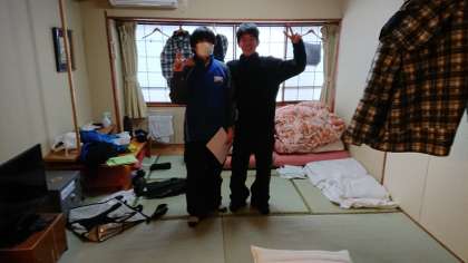保健美化係から部屋の片付け指示があり、部屋チェックを受けながらホテルをあとにします。