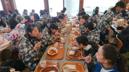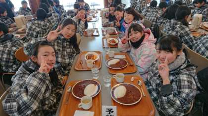 最後の昼食はクラスごとに和やかに食べることができました。ここでも笑顔です!