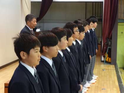 終業式後、第11回八王子市中学校科学コンクール入賞者と八王子市冬季大会で3位に入賞した野球部の表彰を行いました。最後に、関口先生から冬休みの生活(特にSNS)について諸注意がありました。関口先生は、「誰かに守ってもらうのではなく、自分から身を守ることを意識する必要がある」ことを特に強調して話を締めくくりました。
