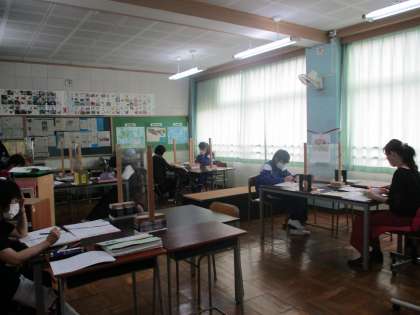 日本語学級 生徒の数に合わせてシールドスタンドを増やしました。