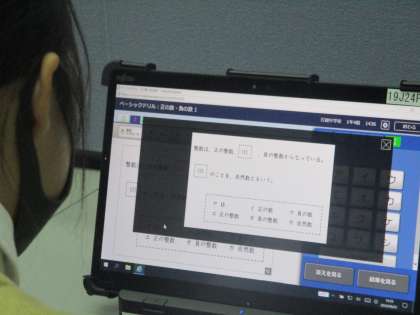 5教科の復習、予習などができるミライシードの活用が進むように、1年生がアクセスの仕方を学びました。