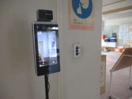 感染症予防のための自動体温計を、昇降口に3台設置しました。