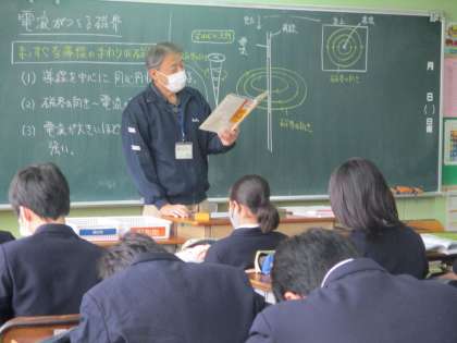 2年理科 「電流がつくる磁界」だんだん内容が抽象化し、頭を沢山使っていました。次回は実験です。