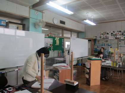 日本語学級 いつも季節が感じられる教室、12月のデコレーションになっていました。