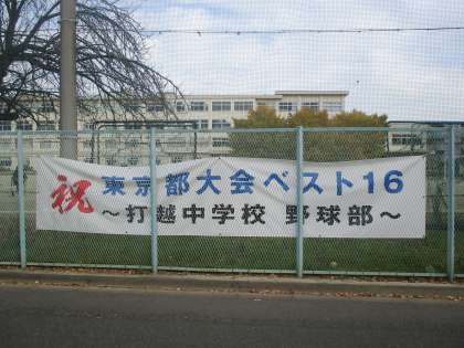 野球部の練習風景が見える場所に横断幕をつけていただきました。