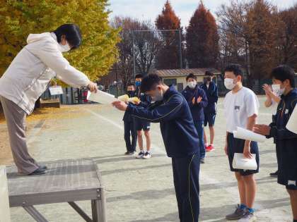 12月12日(土)、5組はマラソン大会を行いました。保護者の皆さんの応援に力づけられ、多くの生徒が自己のベスト記録を更新することができました。