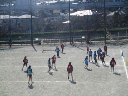 楽しくサッカー、ゴールに入った時の歓声が聞こえてきました。