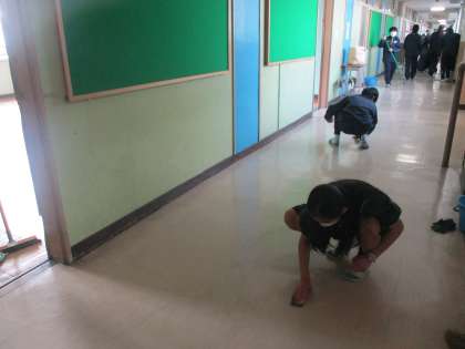 5組の午前中の大掃除に続き、他のフロアを大掃除。